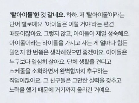 탈아이돌이란 단어를 별로 좋아하지않고
