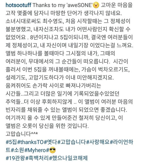 땡스투가 없었던 라이언하트 앨범때는 인스타에 땡스투를 써줬고