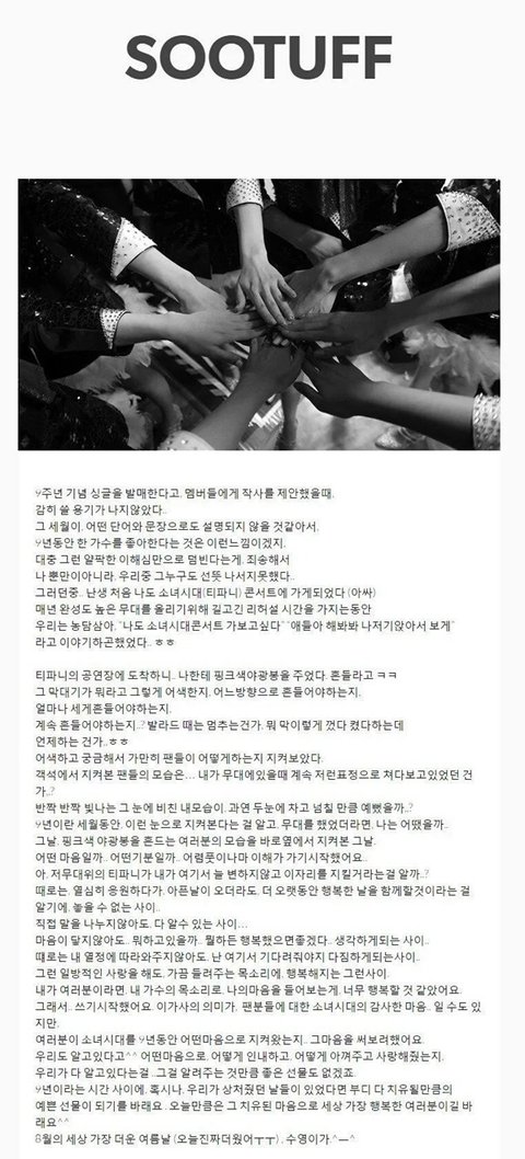 소녀시대 9주년 팬송 '그 여름'이라는 곡을 작사하면서