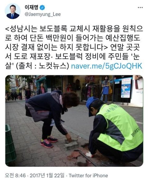 보도블럭은 재활용하고 부인은 관용차를 이용하고 비서를 세금으로 부렸네요.