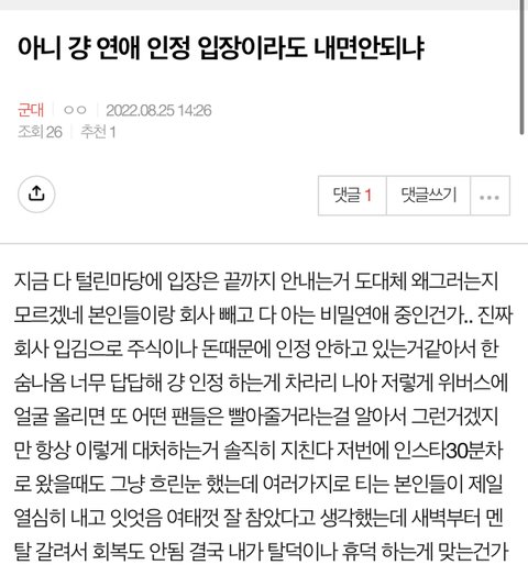 ❌조방❌ 아니 걍 연애 인정 입장이라도