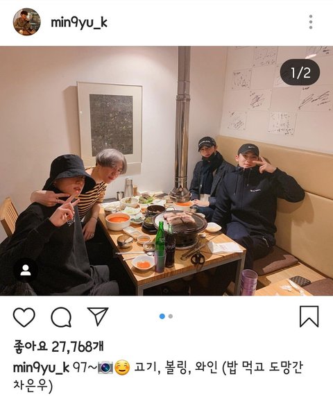 방탄 정국이가 올려준건데 이번에는 은우, 정국, 민규, 유겸 이렇게 4명이서만 만난듯ㅎㅎ