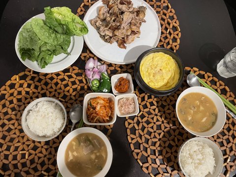 집에 온 다음 날 점심은 된장국에 달걀찜, 삼겹살을 먹었어요. 아~ 그 때부터 좀 살 것 같은 기분이 들었어요.