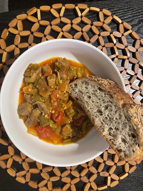 간만에 양고기와 오크라 스튜를 만들었어요.
