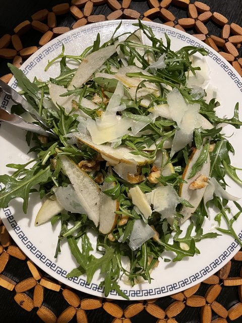 상큼하게 로켓, 배, 파마산 치즈 샐러드도 파스타와 같이 먹으니 굿~ 역시나 둘째딸이 만들고 저는 재료만 제공함 ㅋ