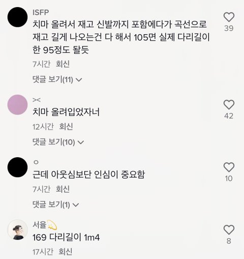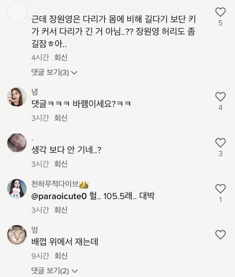저정도 비율에 105면 오히려 낮게 책정된건데 ㅋㅋ 대충재가지고 장원영보다 상체긴 나도 108~9는됨