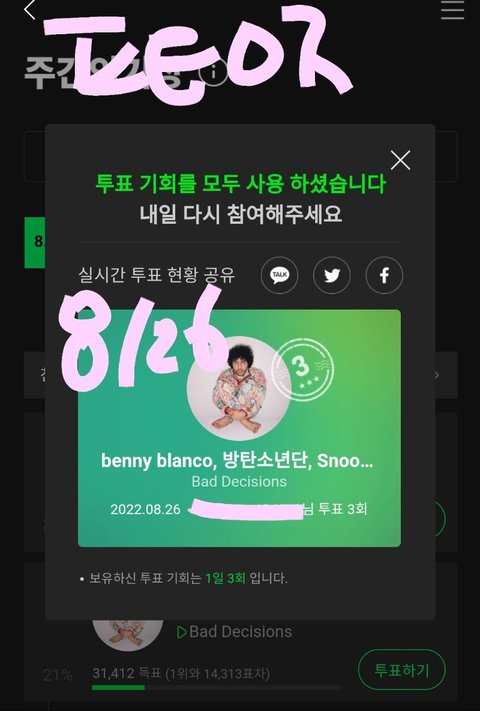 이용권없어도 아이디만 있으면 투표가능! 꾸준히 투표하면 나중에 멜뮤어워드 탑텝이나 여러 심사에 도움 순위 상관없이 후보 오르면 꾸준히 투표하자ㅋㅋ