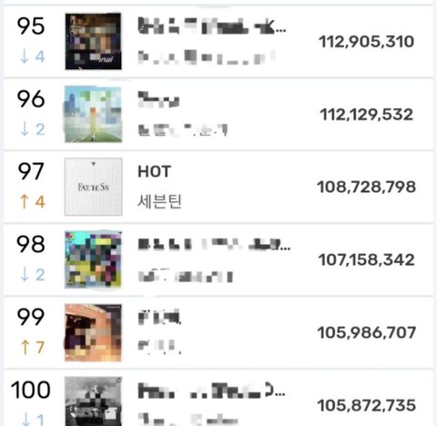 100위안에 들어감! 이게 멜.론 연간차트는 아니니까 더 열심히해서 연간 들어가보자! 오늘 콜라보곡 나오니까 스밍 꼭 돌리고!
