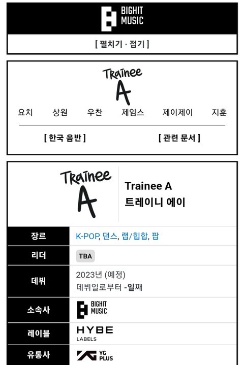 이번에 빅히트 차기 보이그룹준비하던 에이스 trainee a연습생