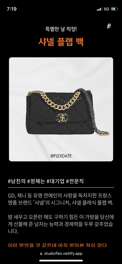 명품백 테스트 하다가 생각난건데, 제니 인간샤넬된것도 알고보면 지디가 넘겨준거 아닐까?ㅋㅋ https://studioflex.netlify.app/handbag/result/chanel/