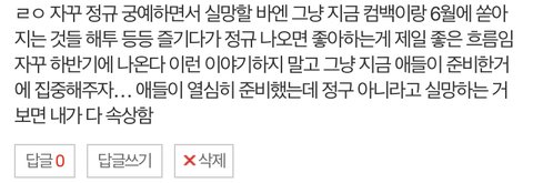 해투랑 머스터는 너무 당연하게 나온다고 생각했던게 ㅅㅂ 웃안웃임… 응 정규도 안 나오고 해투도 안 하고 머스터도 취소됨 ㅅㅃ