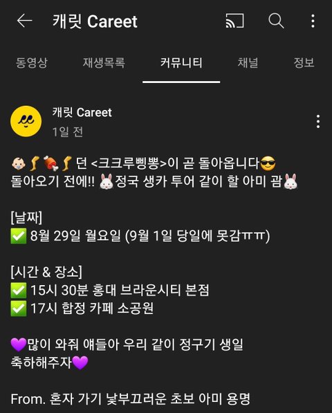 아 용명씨 정국이 생카 온대