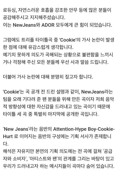 뉴진스 쿠키 가사 논란 공식입장 나옴