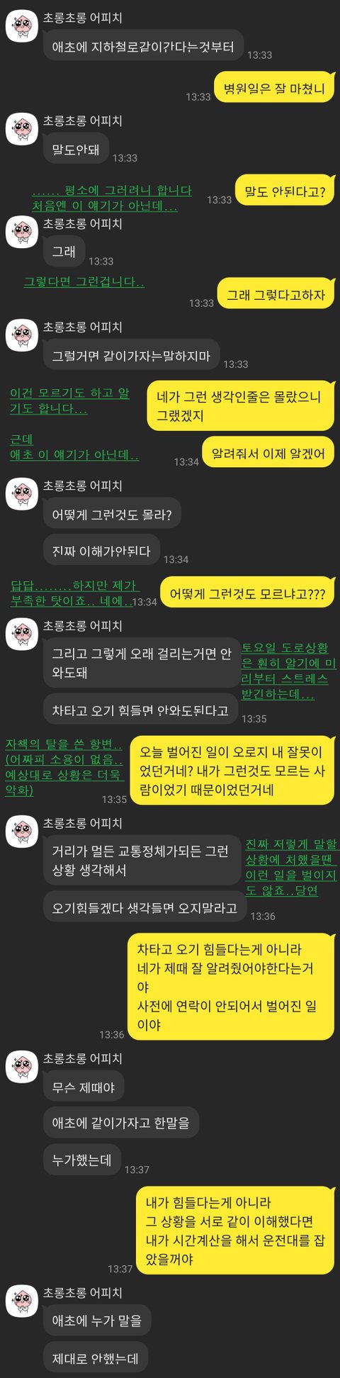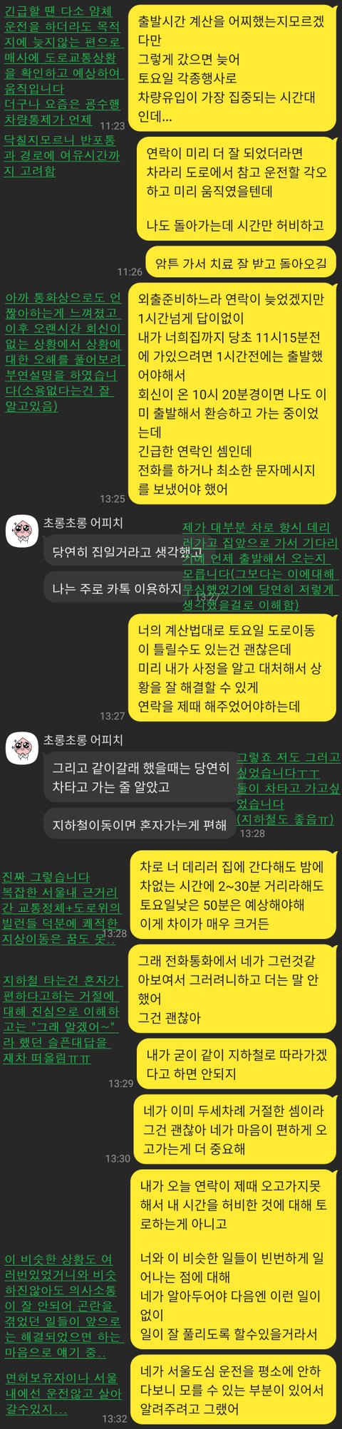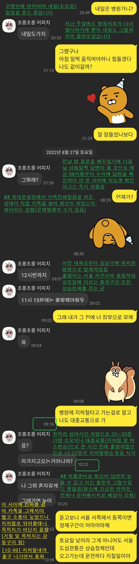 쓰니(남)가 상대방 집앞으로 가서 함께 병원에 가려던 상황입니다