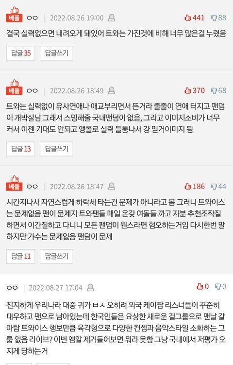 냔 아직도 이렇게 많은사람들이 트와이스 실력없다고 생각할줄 꿈에도 몰랐음;;