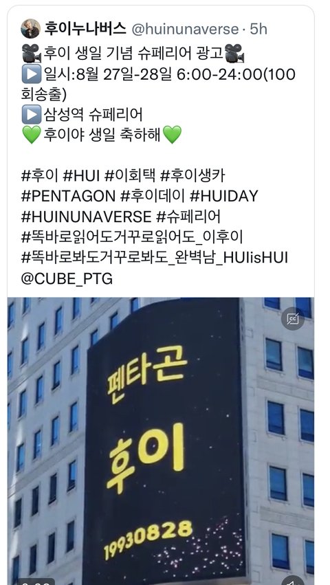 삼성역에 후이 전광판 생일 광고 있데. 함 가바-