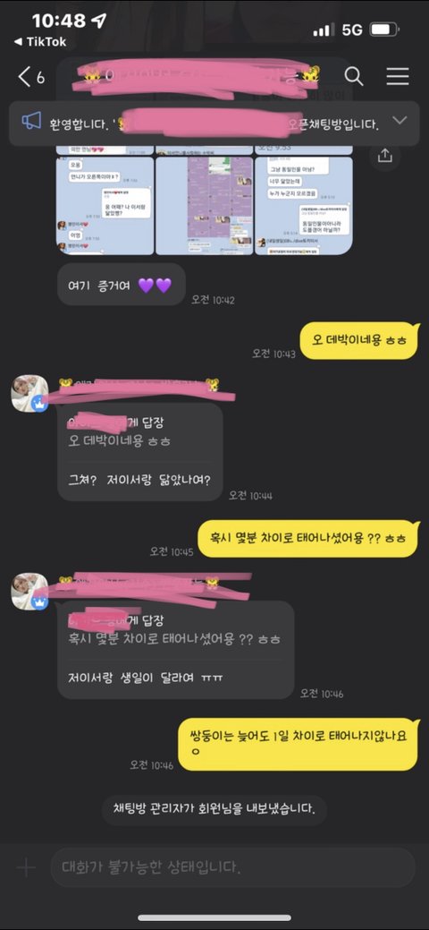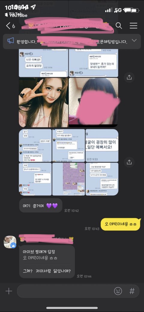 내가 최애가 이서라 좀 웃겨서 올리는건데 내 친구가 어떡해 알아낸건지 나한테 사진 몇장을 보내더라 지금 초상권 침해일까봐 얼굴은 가리고 올리는데 지 맘에 안드는 말 들으면 내보내고 뭐 이거 말하려고 올리는게 아니라 본인이 이서 쌍둥이랜다 이서 쌍둥이라고 닮았냐고 물어보는데 답이 없더라 어떡해 생각해 충분히 어려서 그런걸 수도 있는데 웃겨서 올려봐 하나는 내 친구톡내용 하나는 내 톡내용인데 답도 없어서 나머지 내용은 안올려