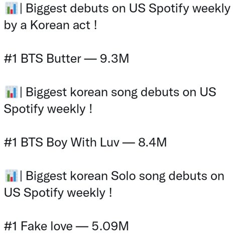 블링크들 방탄한테 발작하는 이유가 죽어도 스포티 기록 못깸ㅋㅋ 2년만에 컴백해도 미스포티는 페이크러브한테도 밀리고, 글로벌도 버터한테 컷당하고, 유튭은 버터랑 다너마한테 컷당하고, 아이튠즈는 100개국 넘은 방탄이랑 비교가안되고, 앺뮤는 뭐 비교가 안되고 이러니 맨날 방탄 군대니 빌보드상술이니 이럼서 날조해서 커뮤마다 도배하고 음흉하게 까질하고 다니는거