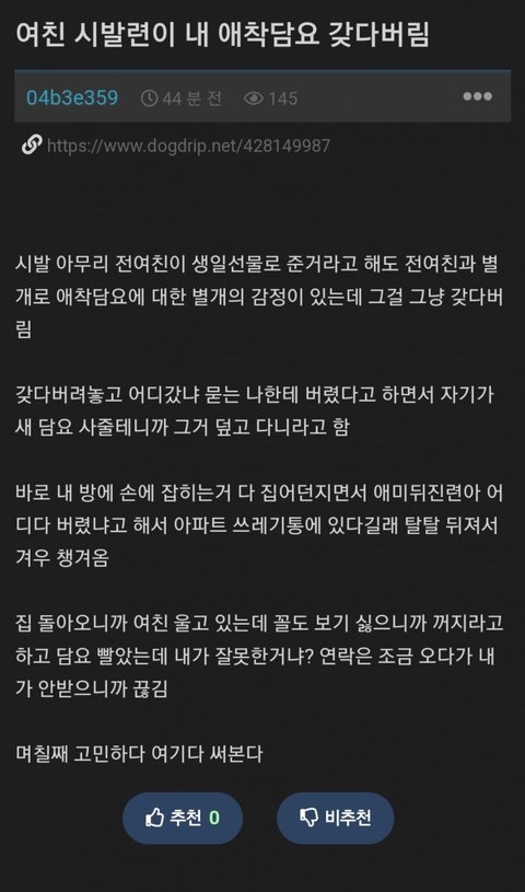 둘 다 이상함 여친도 마음대로 막갖다버리고 담요 버렸다고 패드립하면서 우는 남자도 좀.. 뭐노싶음