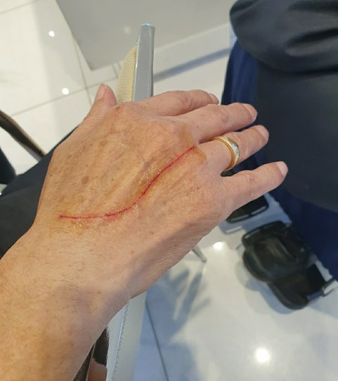 손등에 s자의 붉은 흉터가ㅜ있는 사진을 보내드라구여 ㅠㅠ