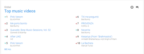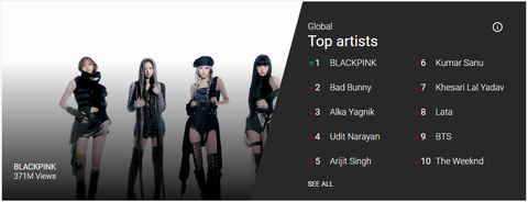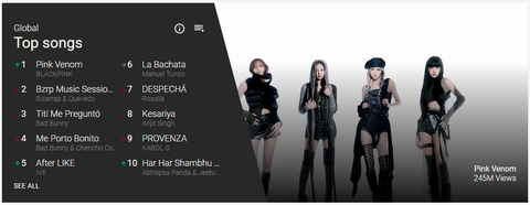 블랙핑크 Pink Venom / 유튜브 뮤직 글로벌 성적