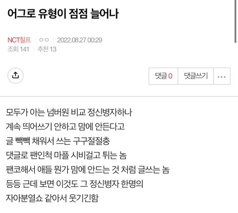 지들끼리 싸우고 왜 우리고 보고 먹금을 안하시냐구 자꾸 ㅜ ㅋㅋㅋㅋㅋㅋ