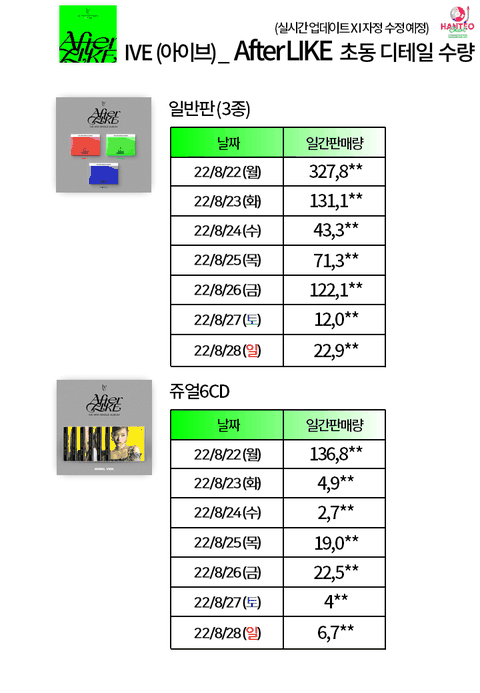 참고로 일레븐 초동 15만장 총판 36만장