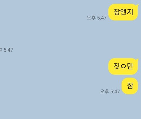 톡하다가 동생 집와서 급하게 잠만 치다가 잠앤지 ㅇㅈㄹ함 죽고싶다