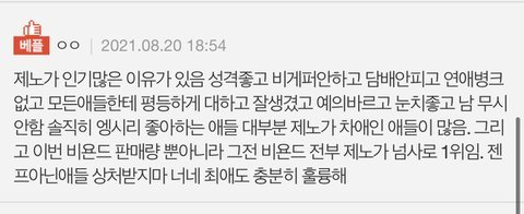 누가 했던 말인지 기억 안나는데 개공감 가는게 젠프들은 타멤프들도 다 제노는 이뻐한다고 생각하고 영업하는 은은한 눈새력 있다는거
