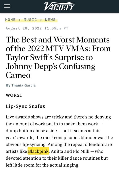 미국잡지가 블핑 vma 립싱크 비판했네