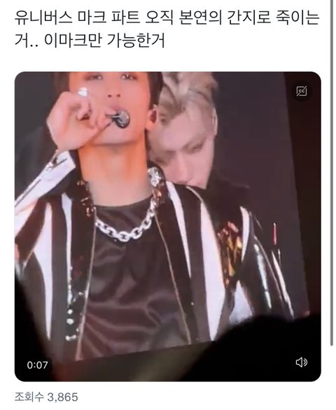 유니버스 랩파트 맨번 제스처하면서 까리하게 하다가 오늘 걍 서서 쳐다보면서 랩만 하는거... 얜 진짜 너드로만은 못봐주겠음 뭐가 ㅈㄴ멋있는건지 아는거같음.. ㅠㅠㅠㅠㅠ