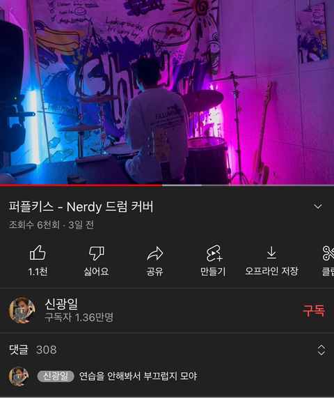 퍼플키스 'Nerdy' 드럼 커버도 올려줌