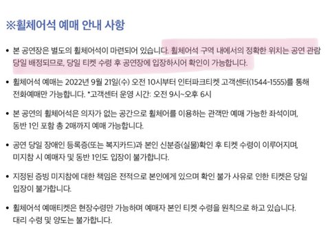 휠체어석 구역 어딘지 미리 말 안해주고 당일에 알려준다고 함 거기다 공연장에 자갈까지 깔면 뭐 오지 말라는 소리 아님? 난 이게 진짜 ㄹㅈㄷ 싸가지인 것 같은데