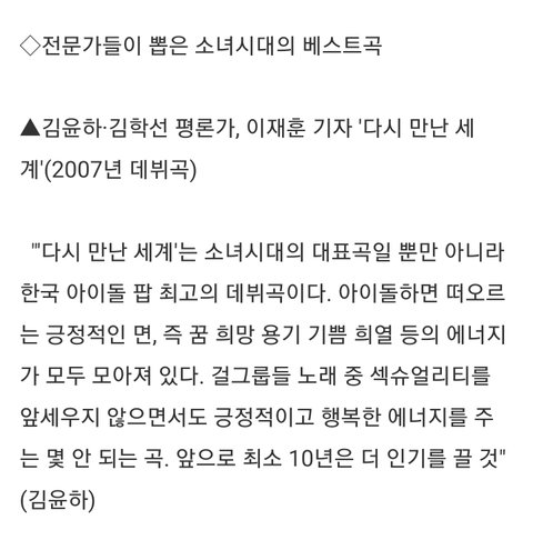 전문가들이 뽑은 최고의 데뷔곡 다시만난세계