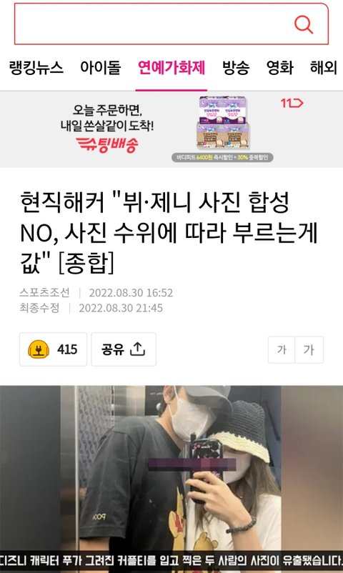 합성 아니라는데 뷔빠들은 왜자꾸
