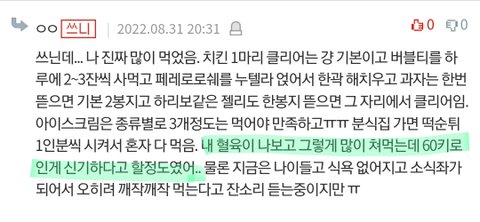 60~70kg대 어중간한 체중 말고 80kg 이상 고도비만은 어쩌다가 살이 그렇게까지 찐건지 너무 궁금함...