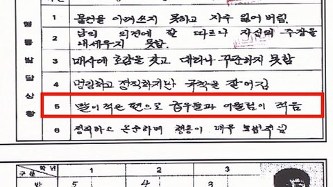 "말이 적은 편으로 급우들과 어울림이 적음"