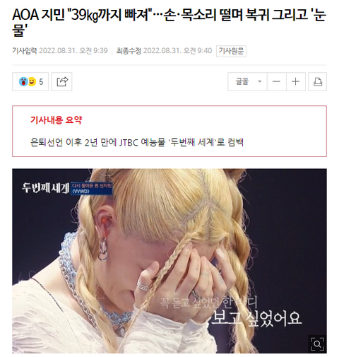 지민 벌벌떨면서 폭풍 오열했대