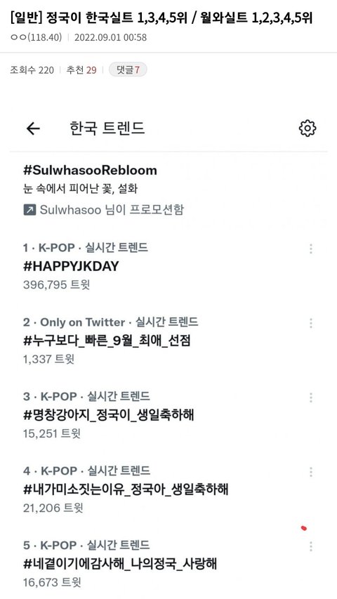 밑에 한국실트도 1위 했다고 하는데 왜이리 못했다고 이럼? 느그새끼 다 망하니까 같이 없다고 우기고 싶은거야? 정국이 느그새끼 보다 압도적으로 국내에서 인기 많으니까 걱정하지 말고ㅋ 실트량 하루종일 보면서 이러는거 자체가 열폭인거야 느그새끼는 관심도 없어서 폭삭 망해도 글 올리지도 않음