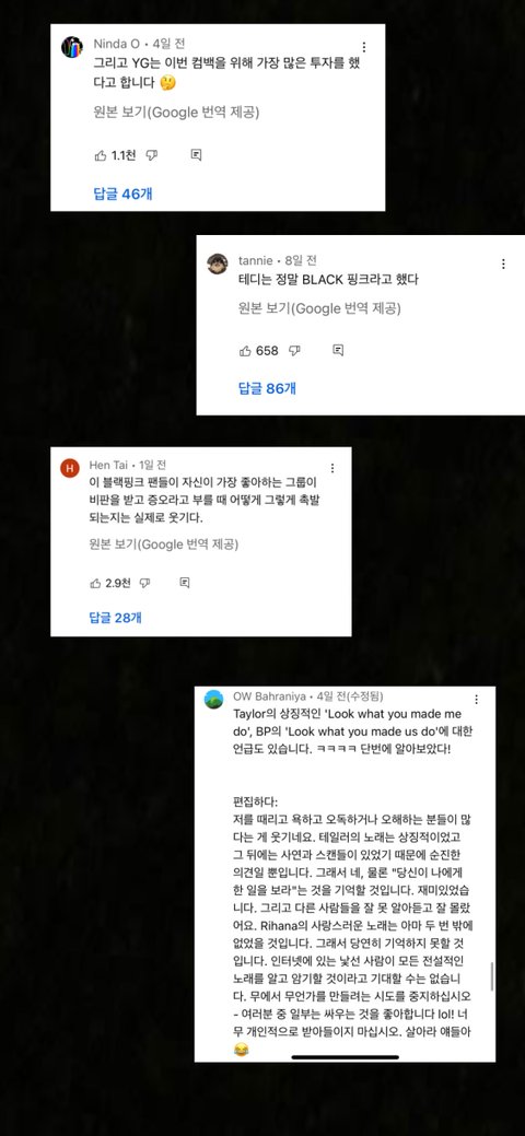 블랙핑크가 좀 억울한 부분이 있긴 한데 그냥 자료조사도 안한 유튜버랑 이간질 외퀴, 극성 블링크 때문에 더 일이 커진듯
