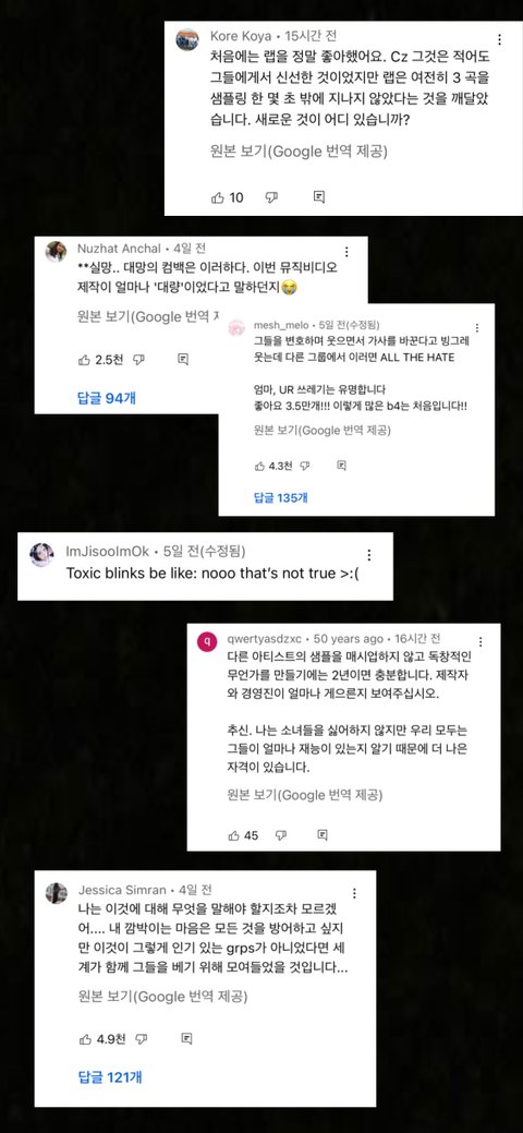 5. 어떤 미국 여자 유튜버가 리사를 떠올릴만한 화장과 드레스를 입고 영상을 올렸을 땐 블링크들이 그렇게 비난을 했으면서 막상 블랙핑크가 누군가를 따라하니 여기에서는 옹호를 한다. lol