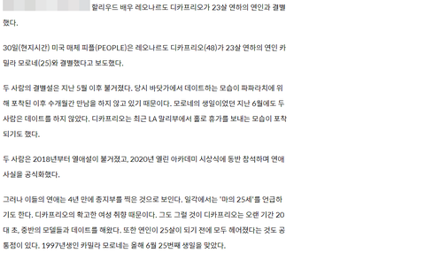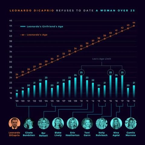 레오나르도 디카프리오 여친 25살 이별설을 검증한 이 그래프