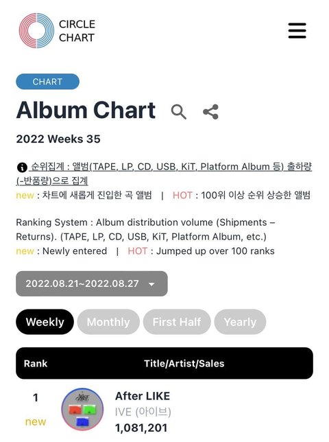 아이브 After LIKE 써클차트 앨범판매량 108만장