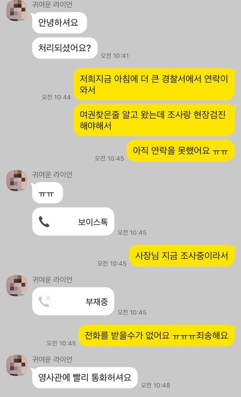 사장님 번호까지 알려주시며 카톡으로 먼저 상황 물어봐주시고