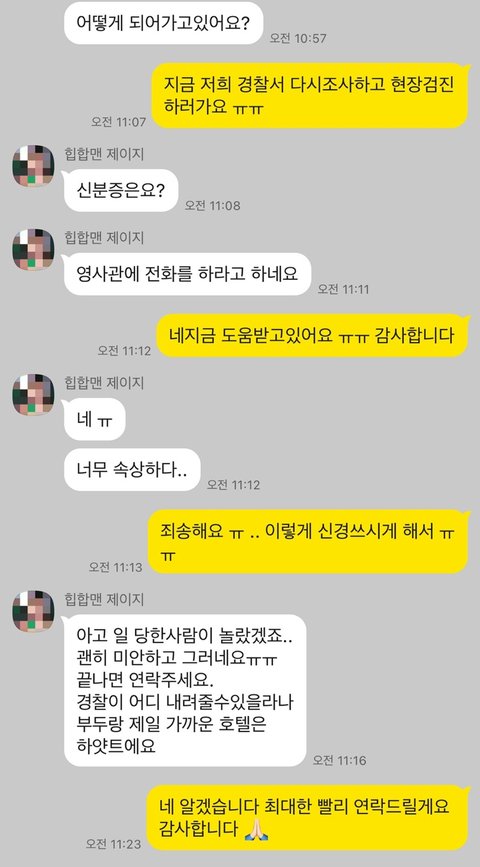 한국분이신 경찰분이 계셨고 통역을 도와주셔서