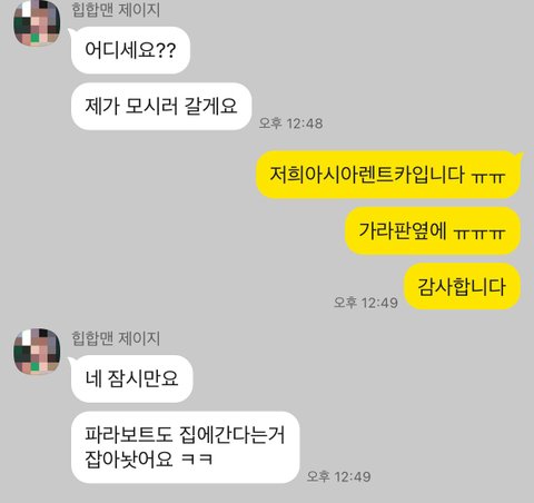 <렌트카 사장님과의 카톡>