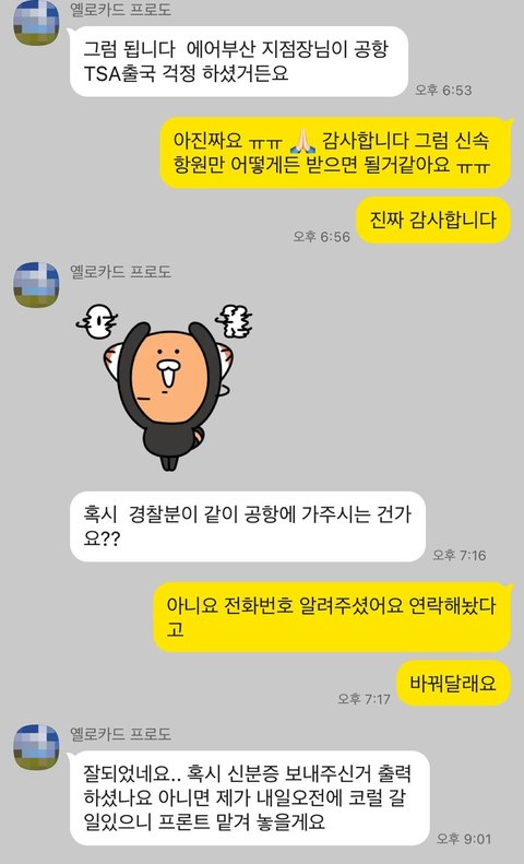 많은 일들이 해결되고 한국 무사히 도착할 때까지 신경써주신