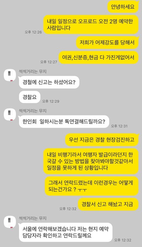 <투어상품 사장님과 카톡>