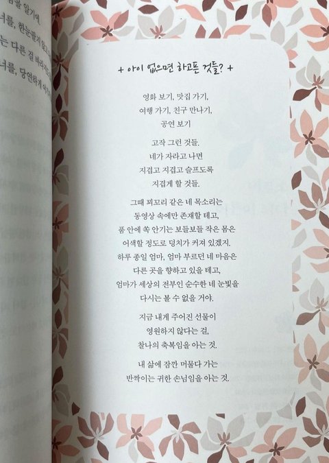 기저귀를 떼기에 시기가 이른 게 아닌가 싶네요. 나이랑 상관없이 아이 발달에 맞춰주셔야해요. 그리고 대소변을 가리려면 대근육을 키워야해요. 그럴 수 있도록 엄마가 노력하셔야겠지요. 그리고 전 친정부모님이 도와주신다고 해도 괜찮다고. 한 번도 도움받은 적 없어요. 친정 부모님이 결혼하라고 등떠미신거 아니잖아요. 두분이서 사랑해서 낳은 아이니 남편분께 먼저 도움을 요청해보세요. 남편분이 안도와주시면 퇴근해서 집에 들어올때 두 눈 꼭 감고 , 아이 둘 맡기고 나가셔요. 하루만이라도 온전히 내 시간을 갖게 되면 아이들을 바라보는 시선이 달라질거에요. 그리고 이건 제가 힘들 때 마다 보는 글인데 도움이 되셨으면 좋겠어요. 송희재 작가님의 나는 예민한 엄마입니다.