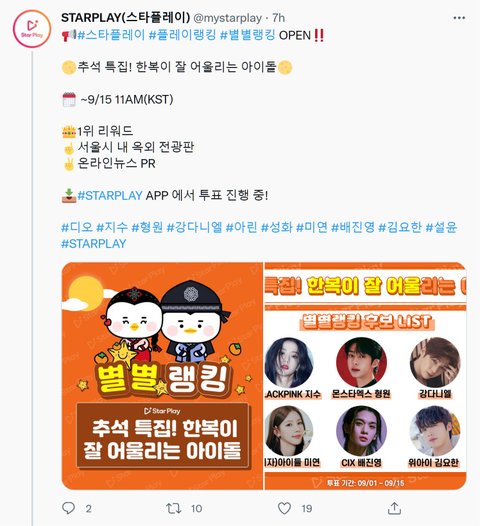 스타플레이 어플에서 진행되고 있는 투표에 후보로 올라와있어서 들구옴